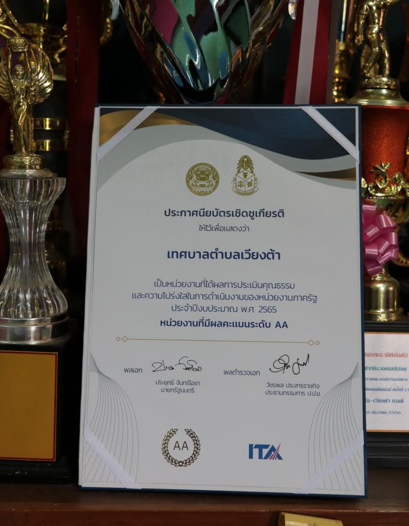 รายละเอียด : วันที่ 4 มกราคม 2566 เวลา 13.30 น. นายประภาส โพธิตา นายกเทศมนตรีตำบลเวียงต้า เข้าร่วมรับนโยบายการขับเคลื่อน “ตัวชี้วัดคำรับรองการปฏิบัติราชการจังหวัดแพร่ ประจำปีงบประมาณ พ.ศ.2566” และลงนามคำรับรองการปฏิบัติราชการจังหวัดแพร่ ประจำปีงบประมาณ พ.ศ.2566 พร้อมเข้ารับเกียรติบัตรการประเมินคุณธรรมและความโปร่งใสในการดำเนินงานของหน่วยงานภาครัฐ (Integrity and Transparency Assessment : ITA) ประจำปีงบประมาณ พ.ศ.2565 ซึ่งเทศบาลตำบลเวียงต้า เป็นหน่วยงานที่ได้ผลการประเมินคุณธรรมและความโปร่งในในการดำเนินงานของหน่วยงานภาครัฐที่มีผลคะแนนระดับ AA โดยมี นายชุติเดช มีจันทร์ ผู้ว่าราชการจังหวัดแพร่ เป็นประธานในพิธี ณ ห้องประชุมจดหมายเหตุ ชั้น 2 ศาลากลางจังหวัดแพร่