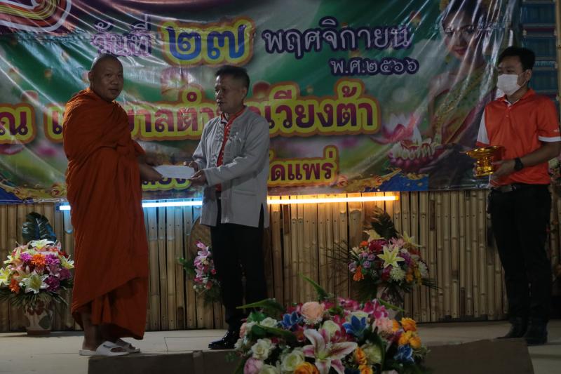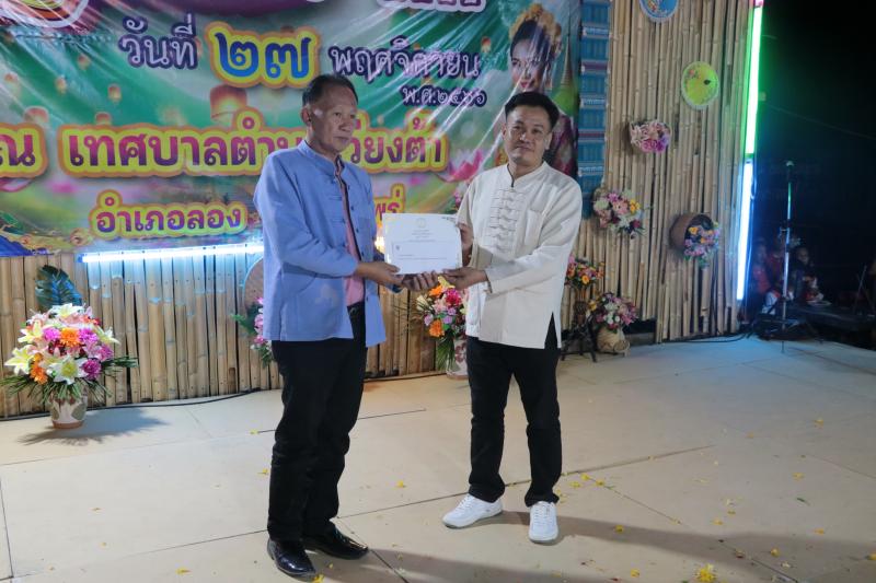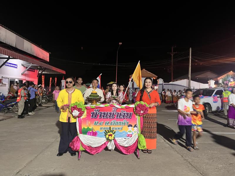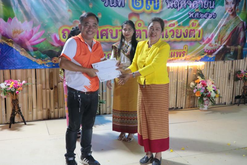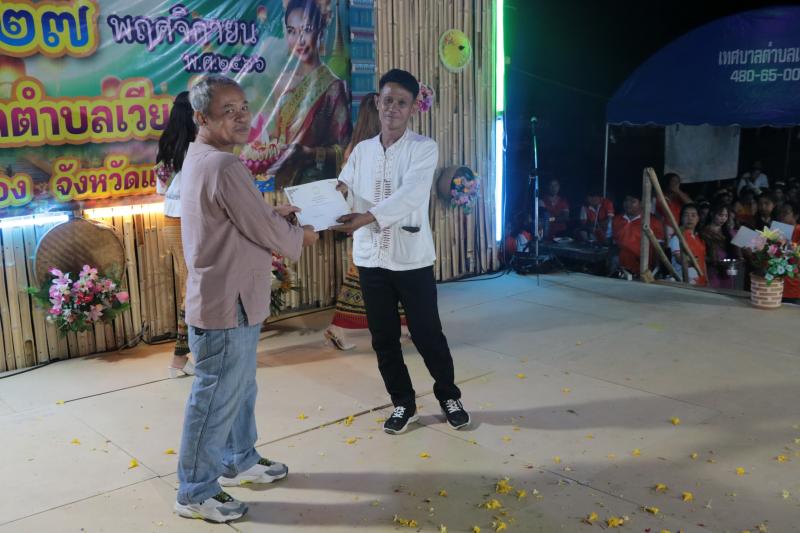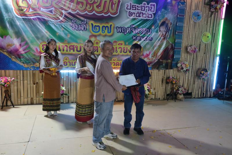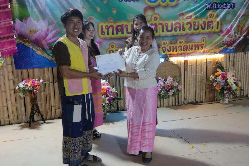 รายละเอียด : วันที่ 27 พฤศจิกายน 2566 เวลา 19.00 น. นายประภาส โพธิตา นายกเทศมนตรีตำบลเวียงต้า เป็นประธานเปิดงานส่งเสริมประเพณีลอยกระทง ประจำปี 2566 ณ ลานสำนักงานเทศบาล โดยมี ว่าที่ ร.ต.ปรเมศ อินโองการ หัวหน้าสำนักปลัดเทศบาล รักษาราชการแทนปลัดเทศบาลกล่าวรายงานวัตถุประสงค์การจัดงาน ในการจัดงานมีกิจกรรม ประกวดขบวนแห่กระทงของหมู่บ้าน 10 หมู่ และมีขบวนแห่ของวัดถ้ำเสรีไทยร่วมขบวน การแสดงของเยาวชน การประกวดนางนพมาศ โดยมีประชาชนมาร่วมงานเป็นจำนวนมาก ในการประกวดนางนพมาศ รางวัลชนะเลิศ ได้แก่ หมายเลข 10 หมู่ที่ 6 รองชนะเลิศอันดับ1 ได้แก่ หมายเลข 2 หมู่ที่ 3 และรางวัลรองชนะเลิศอันดับ2 ได้แก่หมายเลข 7 หมู่ที่ 9 รางวัลขบวนแห่กระทง รางวัลชนะเลิศได้แก่ หมู่ที่ 4 รางวัลรองชนะเลิศอันดับ 1 ได้แก่หมู่ที่ 2 รางวัลรองชนะเลิศอันดับ 2 ได้แก่หมู่ที่ 3 และรางวัลขวัญใจมหาชน ได้แก่ หมายเลข 7 หมู่ที่ 9