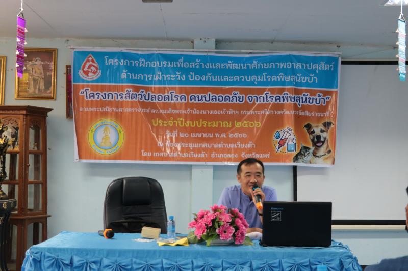 รายละเอียด : วันที่ 20 เมษายน 2566 นายประภาส โพธิตา นายกเทศมนตรีตำบลเวียงต้า กล่าวเปิดการอบรมตามโครงการฝึกอบรมเพื่อสร้างและพัฒนาศักยภาพอาสาปศุสัตว์ด้านการเฝ้าระวังป้องกันและควบคุมโรคพิษสุนัขบ้า โครงการสัตว์ปลอดโรค คนปลอดภัย จากโรคพิษสุนัขบ้า ตามปณิธานศาสตราจารย์ ดร.สมเด็จพระเจ้าน้องนางเธอเจ้าฟ้าจุฬาภรณวลัยลักษณ์ อัครรกุมารี กรมพระศรีสวางควัฒน วรขัติยราชนารี ประจำปีงบประมาณ พ.ศ.2566 โดยมีนายพสิน ใจจันทร์ สัตวแพทย์ อาวุโส สำนักงานปศุสัตว์อำเภอลอง เป็นวิทยากรมาให้ความรู้และหลักการปฏิบัติที่ถูกต้องเพื่อให้อาสาปศุสัตว์มีความรู้ความเข้าใจมีทักษะในการปฏิบัติหน้าที่ได้ดียิ่งขึ้น ณ ห้องประชุมเทศบาลตำบลเวียงต้า