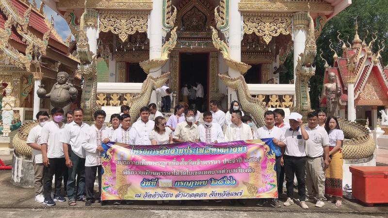 รายละเอียด : วันที่ 27 กรกฎาคม 2566 เทศบาลตำบลเวียงต้า จัดกิจกรรมถวายเทียนพรรษา ตามโครงการ สืบสานประเพณีทางศาสนา “การถวายเทียนเข้าพรรษา เนื่องในวันเข้าพรรษา ประจำปี 2556” โดยถวายเทียนพรรษา ให้แก่วัด และสำนักสงฆ์ จำนวน 8 แห่ง มีนายเฉลียว ลำทา ประธานสภาเทศบาล เป็นประธานในพิธี มีคณะผู้บริหาร สมาชิกสภาเทศบาล ผู้อำนวยการโรงเรียนบ้านแหลง ผู้อำนวยการโรงพยาบาลส่งเสริมสุขภาพตำบลเวียงต้า เจ้าหน้าที่โรงพยาบาลส่งเสริมสุขภาพตำบลต้าเหล่า ผู้นำชุมชน พนักงานเทศบาล พนักงานจ้าง ร่วมกิจกรรม ณ วัดต้าเวียง ตำบลเวียงต้า อำเภอลอง จังหวัดแพร่