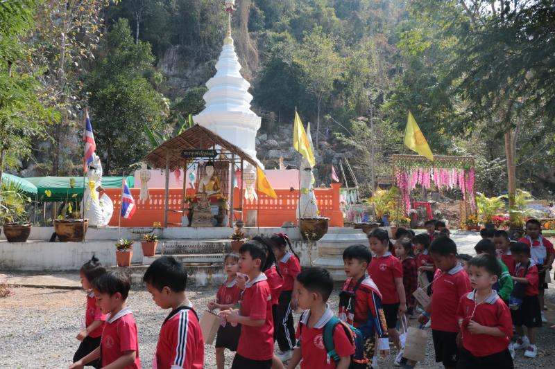 รายละเอียด : วันที่ 19 มกราคม 2566 โรงเรียนอนุบาลเทศบาลตำบลเวียงต้า จัดกิจกรรมพัฒนาคุณภาพผู้เรียน โครงการหนูน้อยเรียนรู้สู่โลกกว้าง ภาคเรียนที่ 2 ประจำปีการศึกษา 2566 การจัดกิจกรรมเพื่อส่งเสริมให้เด็กรู้จักคิดวิเคราะห์ จากการเรียนรู้ด้วยประสบการณ์จริง ให้เด็กได้เปลี่ยนบรรยากาศ ในการเรียนรู้ด้วยตนเอง เรียนรู้การอยู่ร่วมกันอย่างมีความสุข ส่งเสริมให้เด็กมีคุณธรรม ทำนุบำรุงศาสนาที่ตนนับถือ ณ สำนักสงฆ์ถ้ำผาบ่อง และ วัดป่าถ้ำเสรีไทยคีรีบรรพต ซึ่งสถานที่ทั้งสองแห่งเคยเป็นศูนย์บัญชาการขบวนการเสรีไทย ในสมัยสงครามโลกครั้งที่ 2 ที่อยู่ในพื้นที่ตำบลเวียงต้า โดยมีนายประภาส โพธิตา นายกเทศมนตรีตำบลเวียงต้า คณะผู้บริหาร ว่าที่ร้อยตรี ปรเมศ อินโองการ หัวหน้าสำนักปลัดเทศบาล รักษาราชการแทน ปลัดเทศบาล ผอ.กองคลัง พนักงานเทศบาล พนักงานจ้าง นักศึกษาฝึกงาน และคณะครู ร่วมกันดูแลการจัดกิจกรรม ซึ่งพบว่าเด็กมีความกระตือรือร้น และสนุกในการเข้าร่วมกิจกรรมเป็นอย่างดี