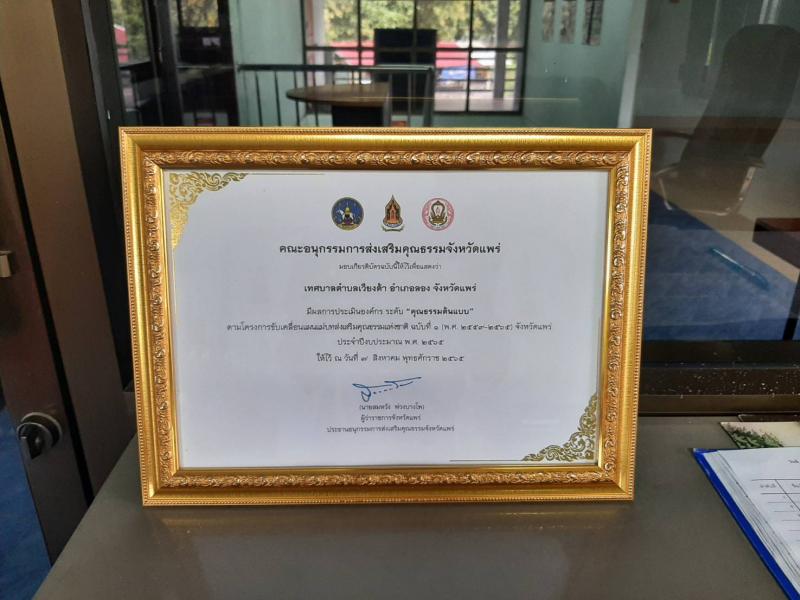 รายละเอียด : วันที่ 7 สิงหาคม พ.ศ. 2565 นายประภาส โพธิตา พร้อมด้วยคณะผู้บริหาร ร่วมรับเกียรติบัตรในงานยกย่องชุมชน องค์กร อำเภอคุณธรรม ประจำปีงบประมาณ 2565 ตามโครงการขับเคลื่อนแผนแม่บทส่งเสริมคุณธรรมแห่งชาติ ฉบับที่ 1 จังหวัดแพร่ ซึ่งเป็น 1 ใน 12 เป้าหมายร่วมการขับเคลื่อนการพัฒนาจังหวัดแพร่ โดยมีนายสมหวัง พ่วงบางโพ ผู้ว่าราชการจังหวัดแพร่ เป็นประธานในพิธี ณ กาดเมกฮิมคือ ประตูชัยไนท์มาร์เก็ต จังหวัดแพร่