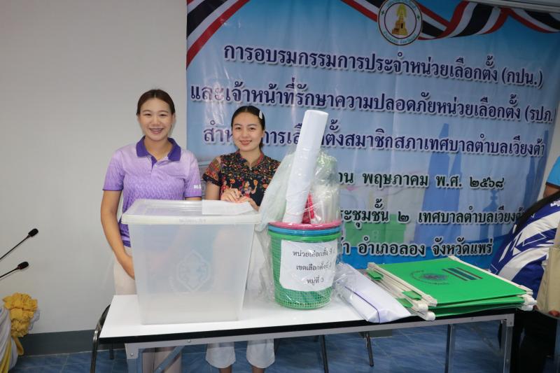 ส่งมอบหีบบัตรเลือกตั้ง บัตรเลือกตั้ง และวัสดุอุปกรณ์เกี่ยวกับการเลือกตั้ง ให้คณะกรรมการประจำหน่วยเลือกตั้ง (กปน.) ในการเลือกตั้งสมาชิกสภาเทศบาลตำบลเวียงต้า วันที่ 10 พฤษภาคม 2568