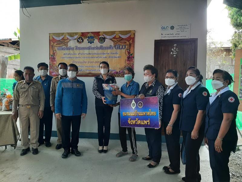 รายละเอียด : วันที่ 27 มกราคม 2565 เวลา 15.00 น. นายชุติเดช มีจันทร์ ผู้ว่าราชการจังหวัดแพร่ เป็นประธานในพิธีมอบบ้านโครงการบ้านห่วงยจากใจ GLO (The Government Lottery Office) สนับสนุนโดยสำนักงานสลากกินแบ่งรัฐบาล ร่วมกับกรมการพัฒนาชุมชน กระทรวงมหาดไทย และจังหวัดแพร่ มอบให้กับ นางเสาร์แก้ว แก้วมา บ้านเลขที่ 2/1 หมู่ที่ 10 ตำบลเวียงต้า โดยมีนายประภาส โพธิตา นายกเทศมนตรีตำบลเวียงต้า กล่าวต้อนรับ และ นายกิตติชัช บุตรศรี นายอำเภอลองกล่าวรายงาน และมอบเครื่องอุปโภคบริโภค แก่ครอบครัวด้อยโอกาสในพื้นที่ ในพิธีมอบบ้านมี พระครูสิริสุเมธากร รองเจ้าคณะอำเภอลอง พระครูพิสณฑ์พัฒนกิจ เจ้าคณะตำบลเวียงต้า หน่วยงานในจังหวัดแพร่ ชมรมแม่บ้านมหาดไทย คณะผู้บริหารเทศบาลตำบลเวียงต้า สมาชิกสภาเทศบาล กำนัน ผู้ใหญ่บ้าน ผู้ช่วยผู้ใหญ่บ้าน และประชาชนหมู่ที่ 1 และ หมู่ที่ 10 ร่วมในพิธี หลังเสร็จพิธีได้ร่วมกัน ปลูกผักสวนครัว ด้านหลังบ้าน เพื่อช่วยลดค่าใช้จ่ายในครัวเรือนด้วย