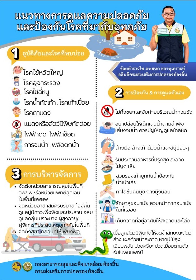 ประชาสัมพันธ์ แนวทางการเตรียมความพร้อมเพื่อเฝ้าระวังและป้องกันโรคและภัยสุขภาพที่เกิดจากสถานการณ์อุทกภัยในช่วงฤดูฝน ปี 2568